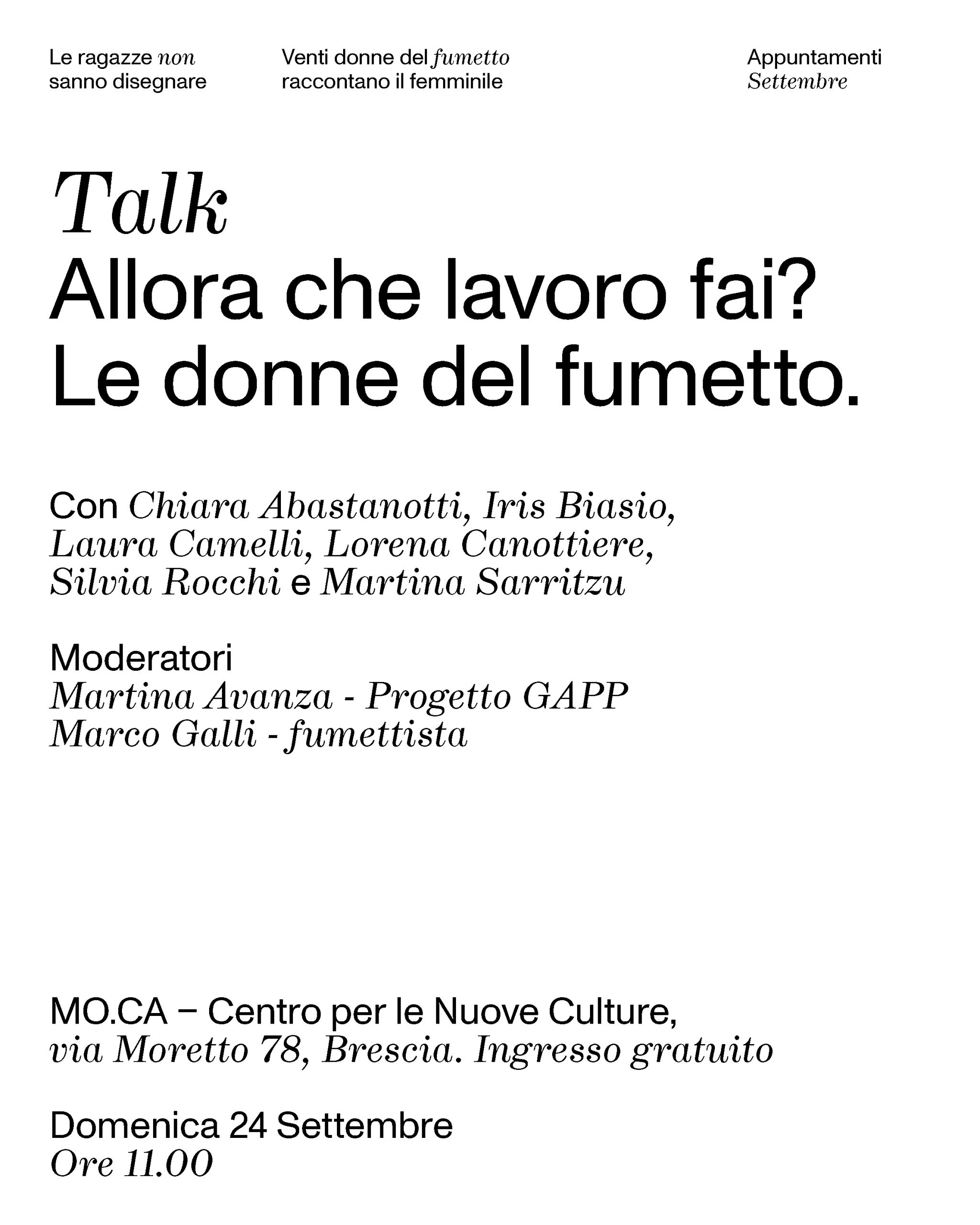 Talk con Martina Avanza / Progetto Gaap e le fumettiste Chiara Abastanotti, Laura Camelli, Iris Biasio, Lorenza Canottiere, Silvia Rocchi, Martina Sarritzu. Modera Marco Galli.
