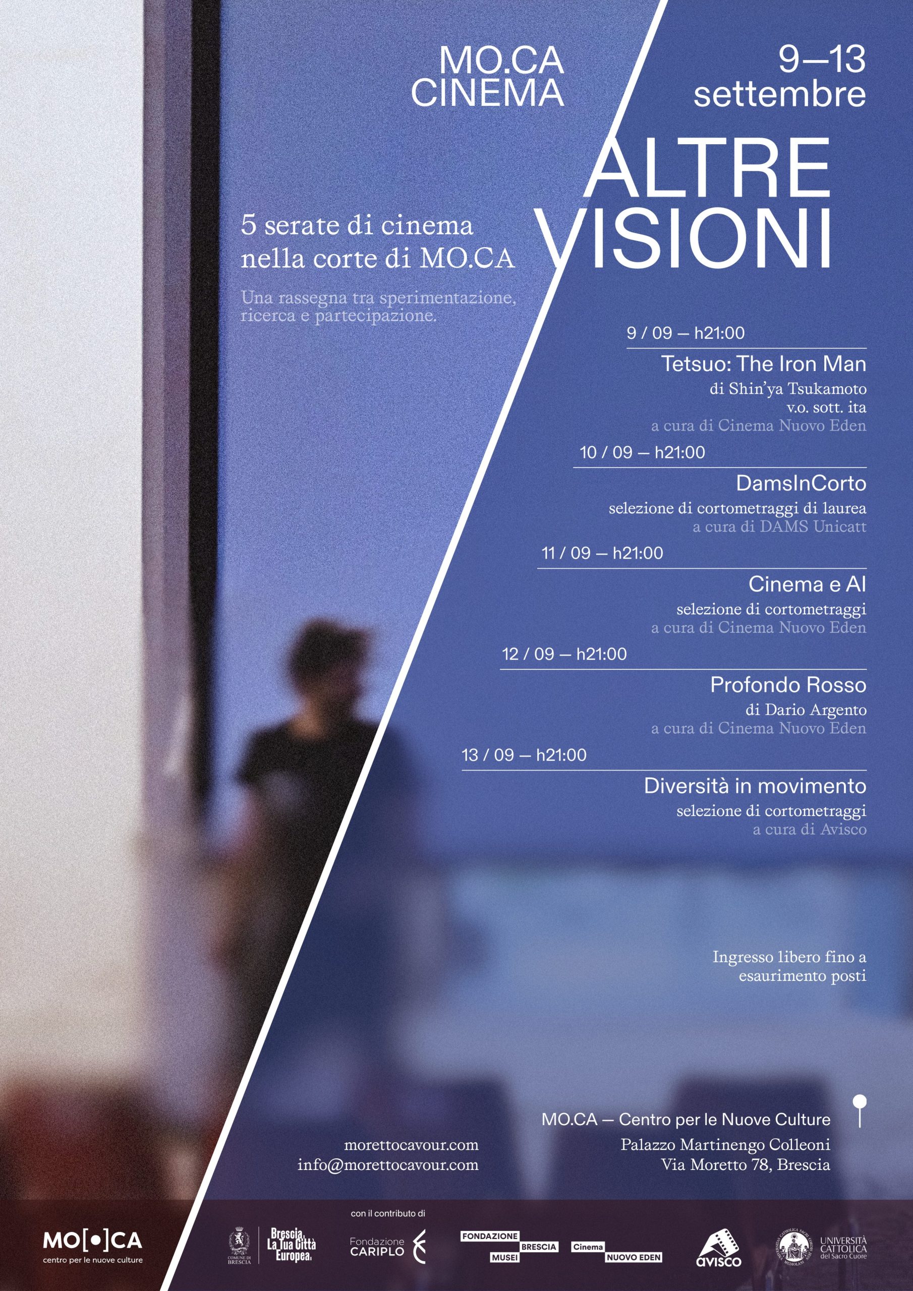 Un ciclo di appuntamenti nella corte di MO.CA per esplorare il cinema contemporaneo attraverso storie, linguaggi e visioni che sfidano i confini narrativi. Altrevisioni porta in sala film e autori capaci di guardare il mondo da prospettive inedite, generando domande e suggestioni che restano anche dopo i titoli di coda. Ogni proiezione è un invito a scoprire opere fuori dal circuito mainstream e a incontrare chi le ha create, in un dialogo diretto con il pubblico.