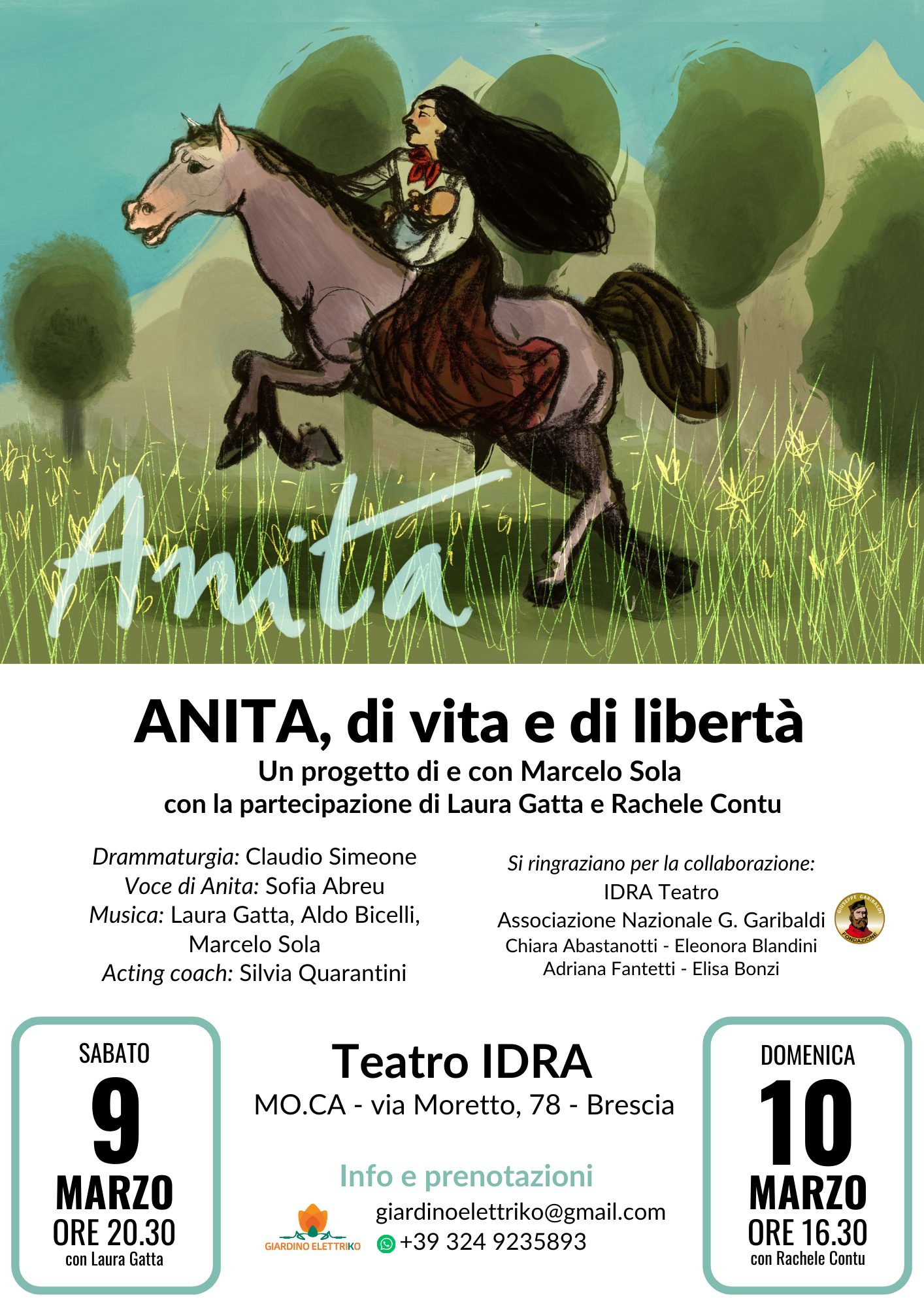Lo spettacolo vuole correggere l’ingiustizia storica fatta al personaggio di Anita, conosciuta dagli italiani solo come la moglie di Giuseppe Garibaldi, ma che è stata in realtà autrice di ogni scelta della sua vita, oltre che una vera e propria eroina.
