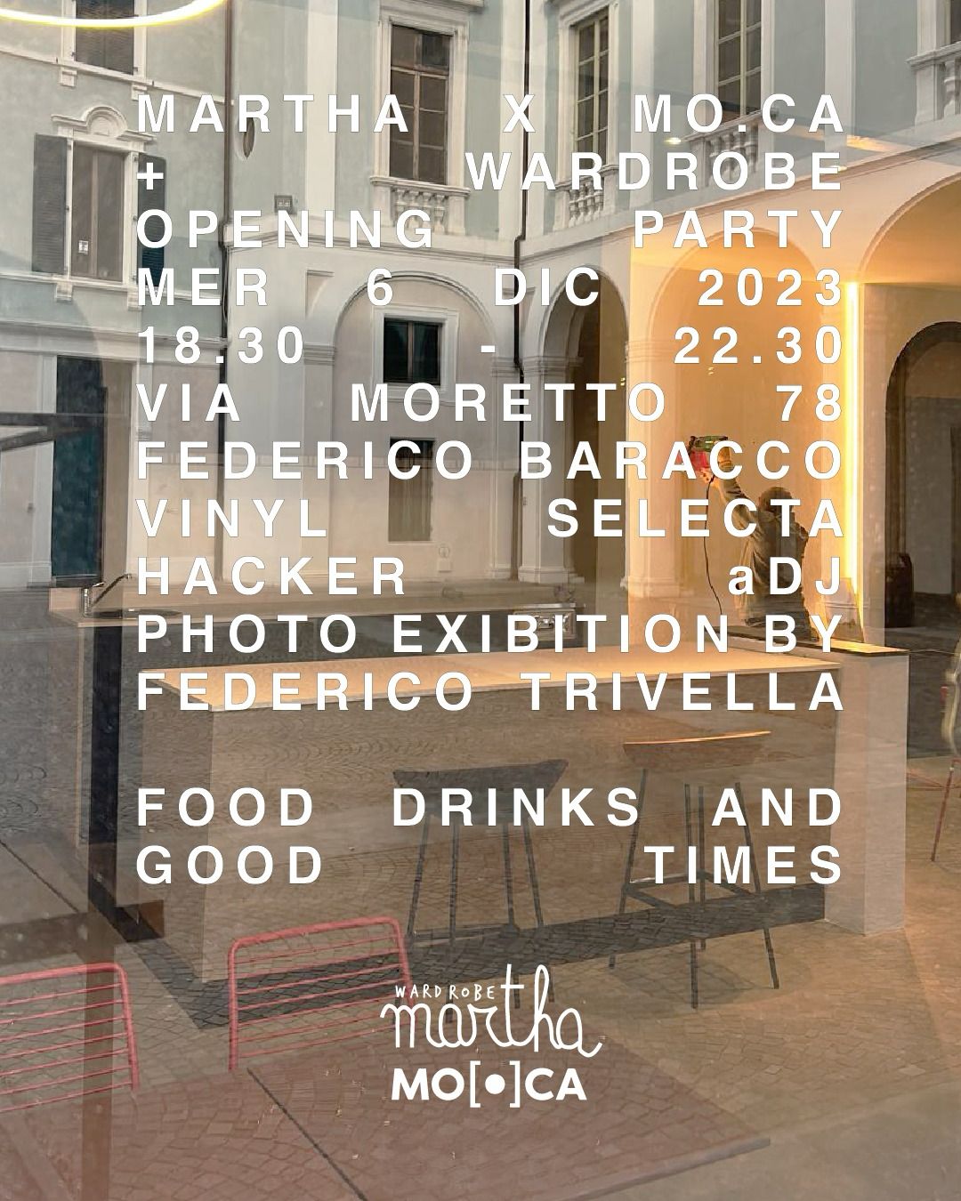 Vi aspettiamo per il grande giorno dell’inaugurazione di Martha x MO.CA + Wardrobe, il bar a Palazzo Martinengo Colleoni, sotto la sontuosa scalinata.
