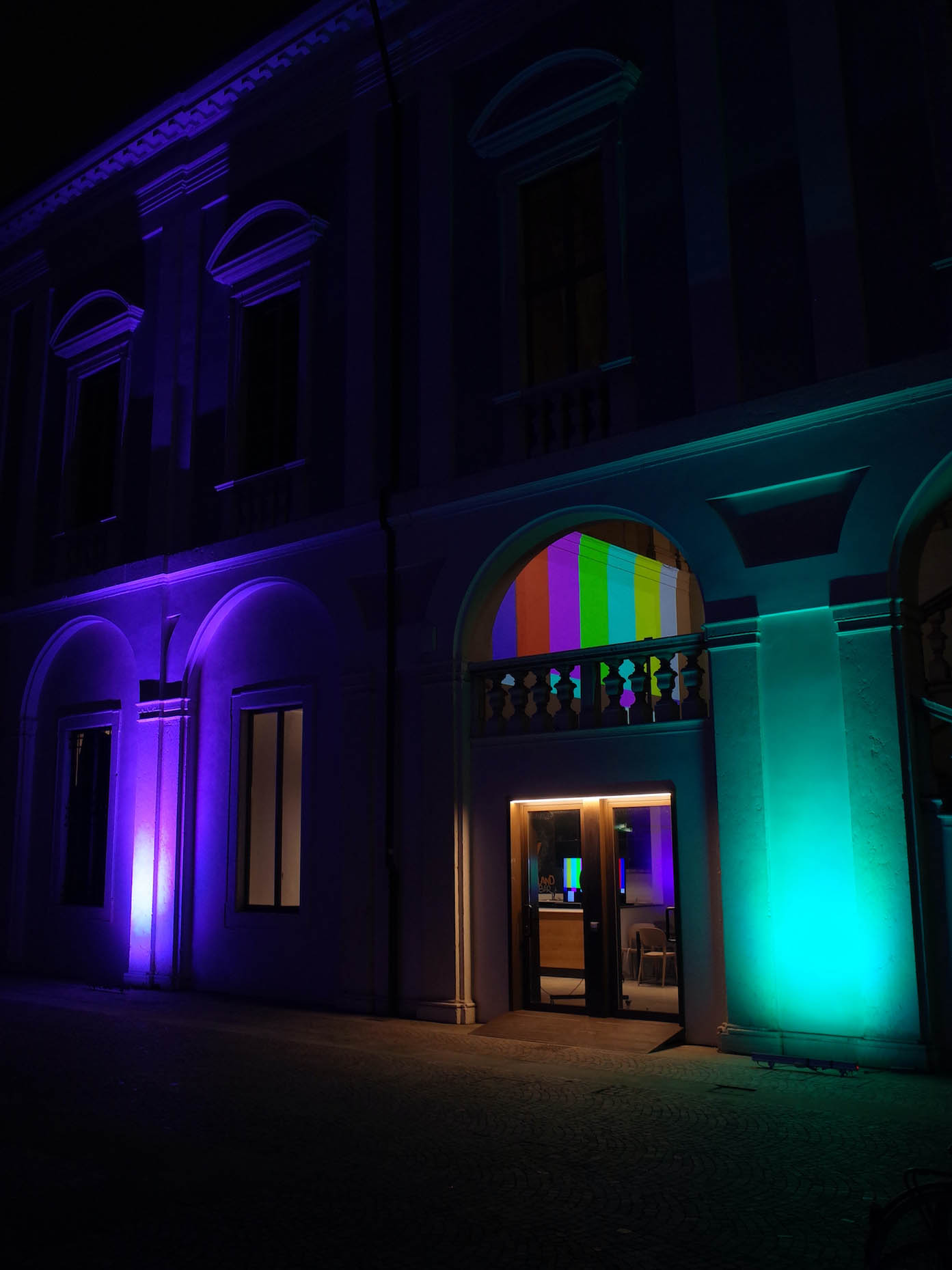 Installazione multimediale. Video proiezioni e spot luminosi.