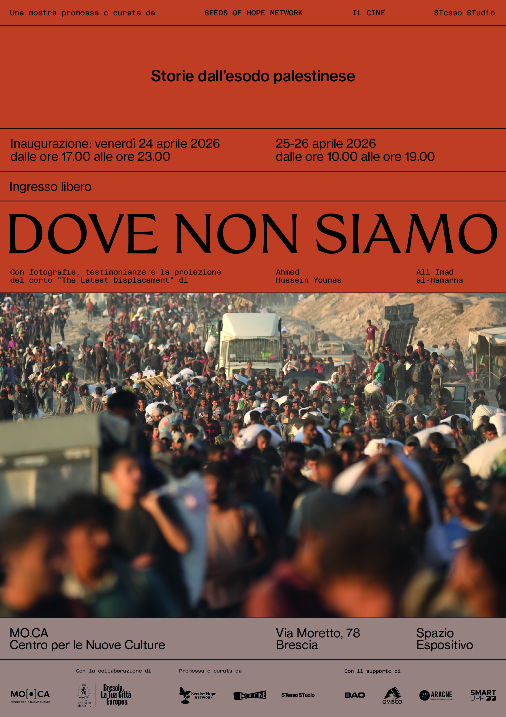 DOVE NON SIAMO: Storie dall’esodo palestinese è una mostra multimediale immersiva promossa e curata da Seeds of Hope Network e dal collettivo artistico IL CINE, in collaborazione con STesso STudio.