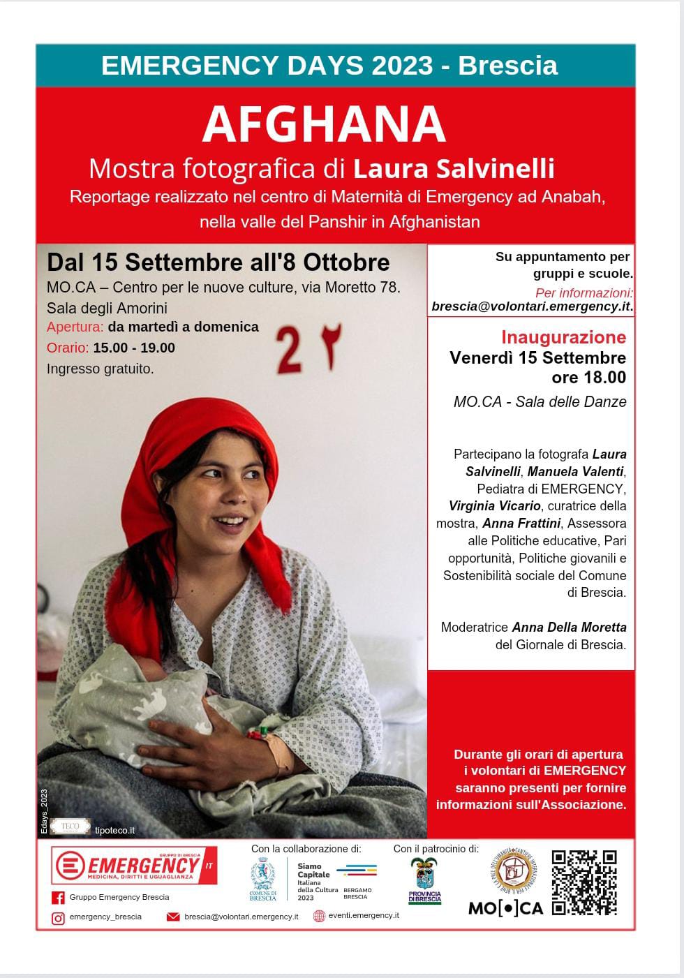 La Mostra verrà inaugurata il giorno 15 settembre alle ore 18:00 in sala Danze. Alla presentazione interverranno la fotografa Laura Salvinelli, Virginia Vicario – curatrice della mostra, Emanuela Valenti – Pediatra di Emergency. Si parlerà della condizione femminile in Afghanistan. Parteciperà Anna Frattini, Assessora alle Politiche educative, alle Pari opportunità, alle Politiche giovanili e alla Sostenibilità sociale del Comune di Brescia. Moderatrice sarà Anna Della Moretta del Giornale Di Brescia.