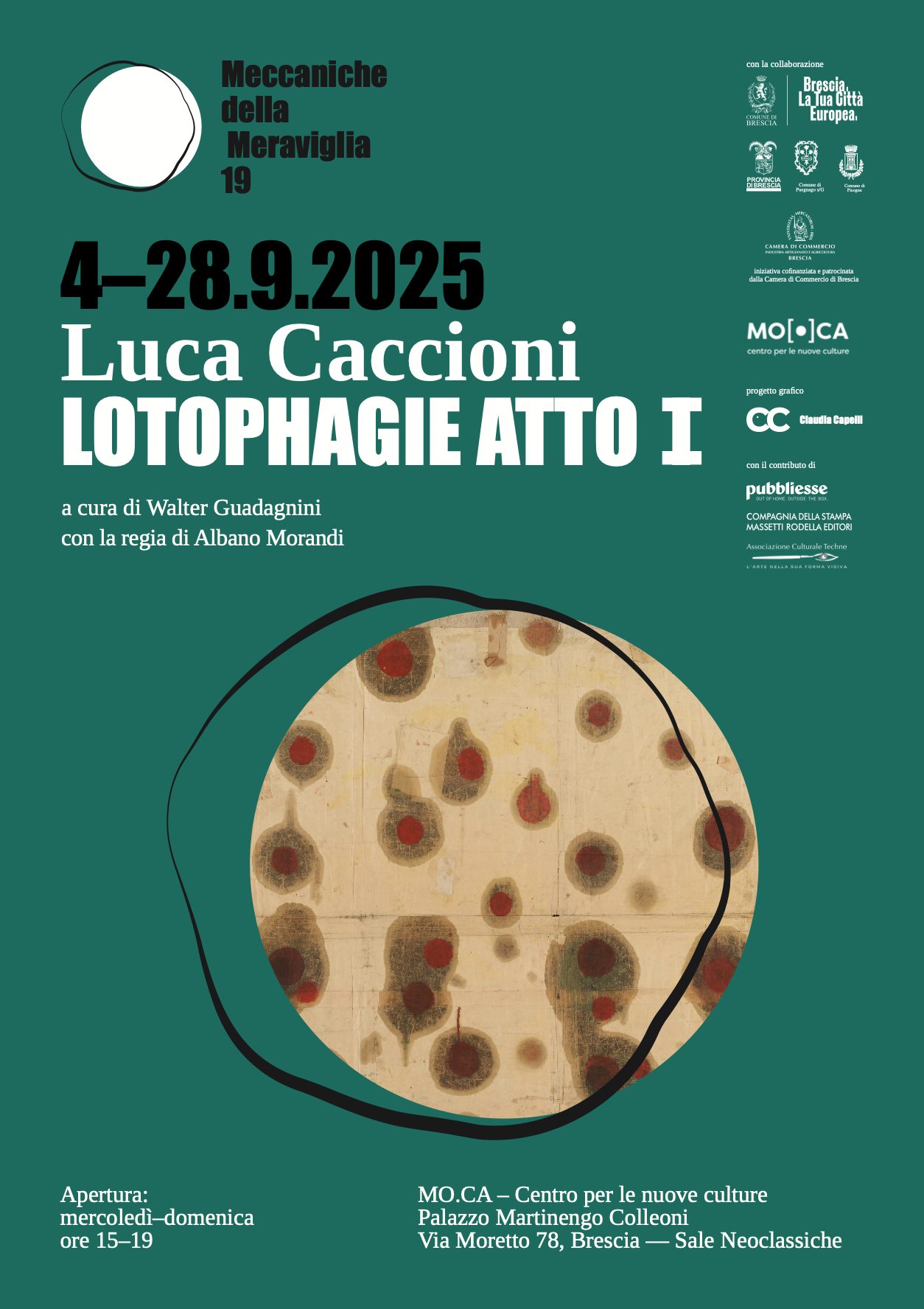Il ciclo della “Lotophagie” prende avvio nel corso del primo decennio del Duemila ed è tutt’ora in corso di sviluppo: non a caso la mostra odierna si divide in due grandi capitoli, il primo – “Serie 1” – composto da alcune opere recentemente ritrovate nello studio dell’artista, il secondo – “Serie 2” – composto invece da opere realizzate negli ultimi mesi appositamente per questa occasione. Una mostra di inediti, dunque, a confermare l’importanza che questo appuntamento riveste anche per l’artista bolognese. “Lotophagie” si ispira, come è evidente dal titolo, all’episodio dell’”Odissea” di cui sono protagonisti per l’appunto i mangiatori di loto, che attraverso l’assunzione dei fiori della pianta dimenticano il passato: metafora questa per Caccioni non tanto di un’assenza di memoria, ma della capacità della memoria di stravolgere la realtà, le apparenze stesse del reale, per dare vita a forme inedite e sempre sorprendenti. Il supporto utilizzato dal pittore contiene infatti la memoria del suo utilizzo originario, ma i segni e le figure presenti sulla carta perdono la loro funzione, trasferite come sono in un altro mondo – quello dell’arte figurativa – e ulteriormente modificate dall’intervento del pittore.
