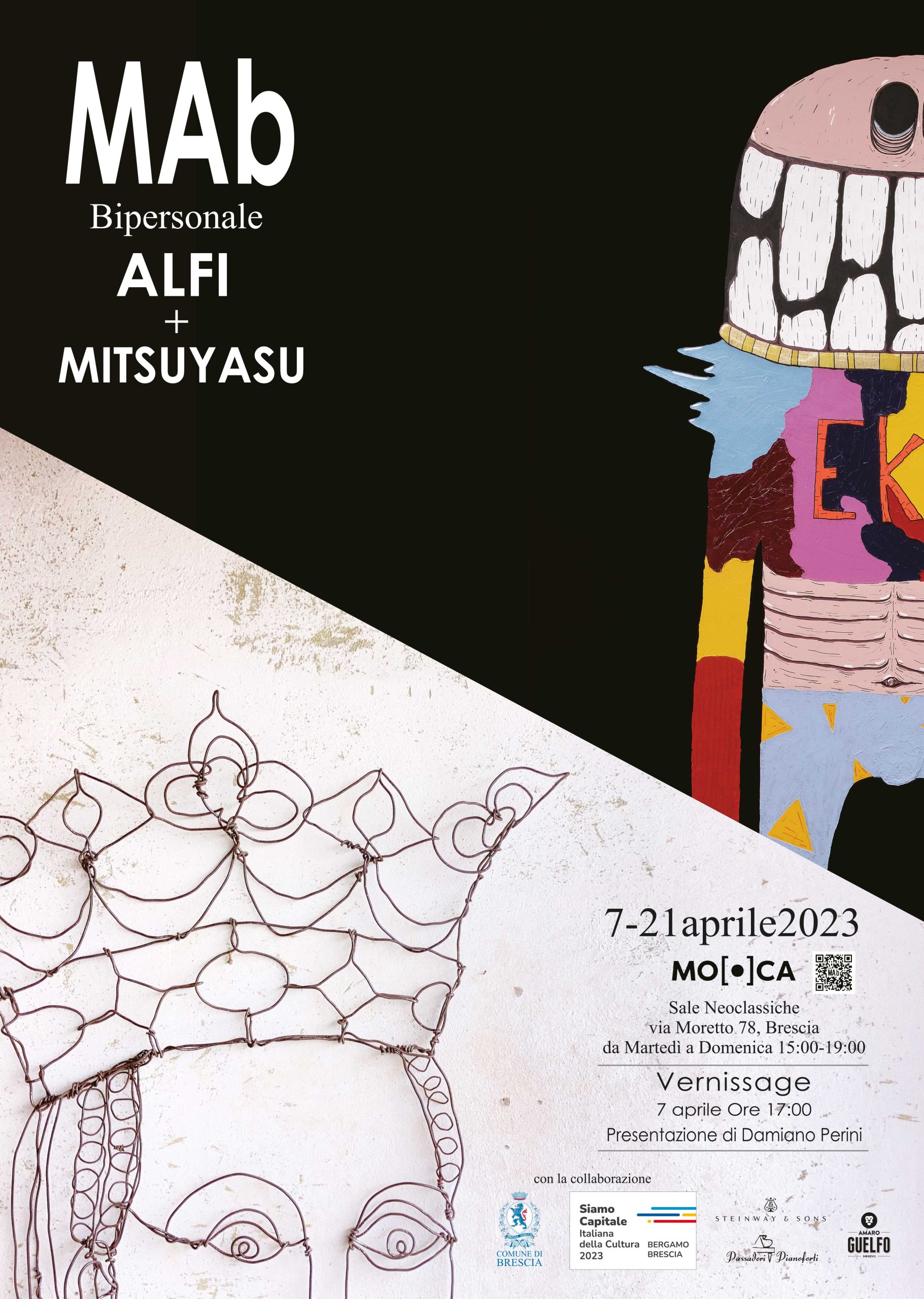 Mostra bipersonale di arte contemporanea che indaga la relazione tra le opere dell’artista bresciano Alessandro Fusari, in arte Alfi e quelle dell’artista giapponese Mitsuyasu Hatakeda. Il filo conduttore della mostra è il contrasto, percepito in ogni aspetto dei rispettivi lavori, inteso come diversità di materiale, imposizione spaziale, cromatismo. Eppure la giustapposizione dei due mondi artistici crea un ambiente armonico dove i vuoti dell’uno vengono riempiti dai colori dell’altro e dove il bi assume forme duplici e inaspettate.