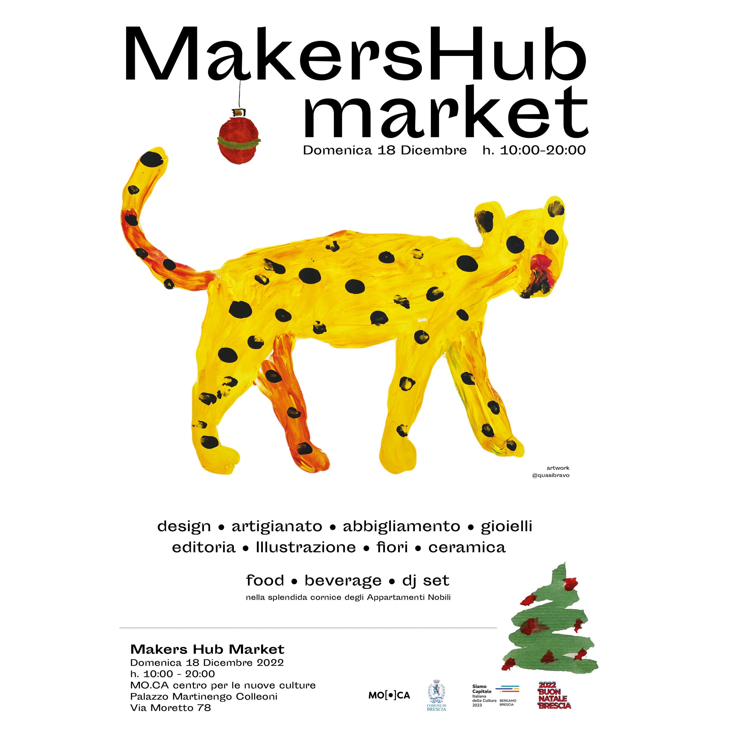 Makers Hub Brescia, domenica 18 dicembre in occasione del Natale, dalle ore 10 alle ore 20, apre le porte alla prima edizione del Makers Hub Market, nella splendida cornice degli appartamenti nobili di MO.CA – centro per le nuove culture – Palazzo Martinengo Colleoni in Via Moretto 78.