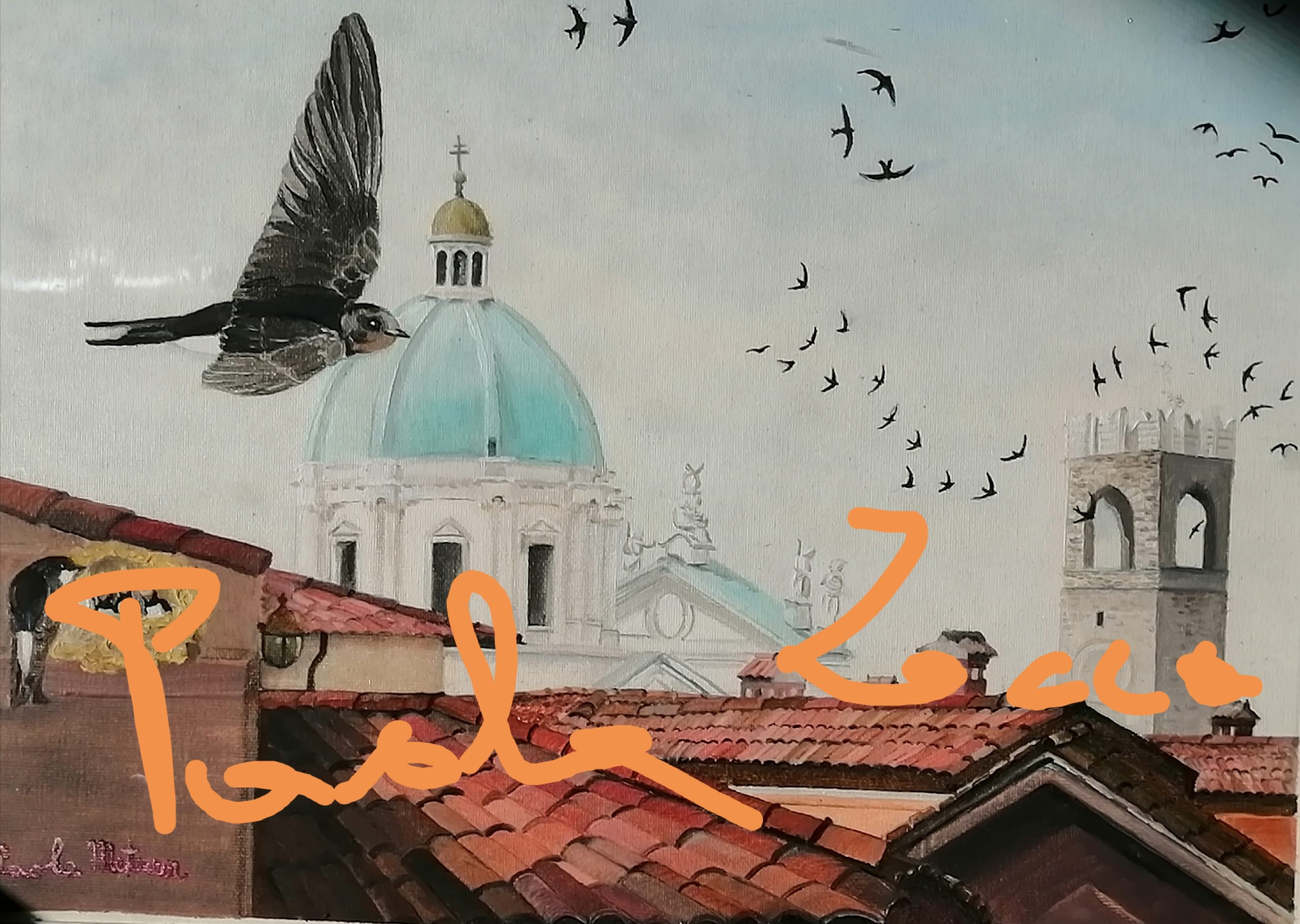 Dopo i miei dipinti a pennarello ispirati dal noto mio Maestro bresciano Trainini e il giudizio delle medie di continuare nell’ambito artistico, la mia passione per la pittura ad olio è nata tardivamente, da una quindicina d’anni, grazie ad una serie di emissioni televisive in americano del paesaggista Bob Ross. Questa mia prima serie di dipinti con terpentina ed olio di lino è quindi caratterizzata dal procedere per macchie, anche nei ritratti, preceduti, però, da realizzazione a matita. In seguito, grazie a qualche lezione privata del maestro Asaro, ho scoperto lo sfumato: l’utilizzo su superfici contigue del pennello “come il battere delle ali di una farfalla” per eliminare l’effetto macchia. Penso in particolare al mio cestello di ciliegie o ai successivi ritratti dei miei figli. Attualmente mi realizzo nel figurativo connotato di intimismo, nel sottinteso intento di realizzare un diario del vissuto personale. Sono motivata dal piacere di dipingere e dal “tenere traccia”, spesso con l’impressione di essere in ritardo al riguardo, ragion per cui mi è successo di replicare un mio dipinto, del quale, altrimenti, non avrei potuto separarmi. Svariati sono i dipinti dei miei figli, di alcuni conoscenti, molti i paesaggi sia Trentini di montagne scoperte durante passeggiate o scorci naturalistici della ben conosciuta Rendena, in particolare dintorni di Pinzolo, che Bresciani la mia città d’origine e i diversi laghi d’Idro, di Garda, Iseo, le Torbiere, di cui uno dipinto a due mani con la gentile collaborazione della nota pittrice Anna Pelucchetti di Gardone. Ma anche francesi come il mare della Costa Azzurra, Notre Dame de Paris e tedeschi della regione di Treviri ed in particolare di alcune piazze coi monumenti ed i pittoreschi mercati di Natale. Oltre ai miei animali, dipingo infine molti fiori, in particolare sono affascinata dai campestri e slanciati malvoni. Apprezzo il lato umano e l’arricchente confronto delle esposizioni. Oltre ai maestri del Rinascimento, apprezzo i dipinti del divisionista trentino Segantini, le contadine acquaforti del bresciano Tregambe, le montagne ed i laghi bresciani del Togni, la poesia religiosa di Chagall, la vitalità impressionista di Rénoir, l’originalità di Magritte, i paesaggi dei laghi vulcanici tedeschi di Fritz Von Wille, la delicatezza compositiva della gardesana Anna Pelucchetti, il lirismo astratto del noto artista pittore musicista bresciano Alberto Bonera e tanti altri. Se inizialmente nei dipinti il bello scaturiva, sebben con una tecnica perfettibile, dal mio essere, con un proseguire inversamente proporzionale all’affinarsi della mia tecnica, il bello è diventato col mio occhio una ricerca esterna, nel tentativo di ricondurre alla bidimensionalità la forse solo illusione degli ologrammi che percepiamo.