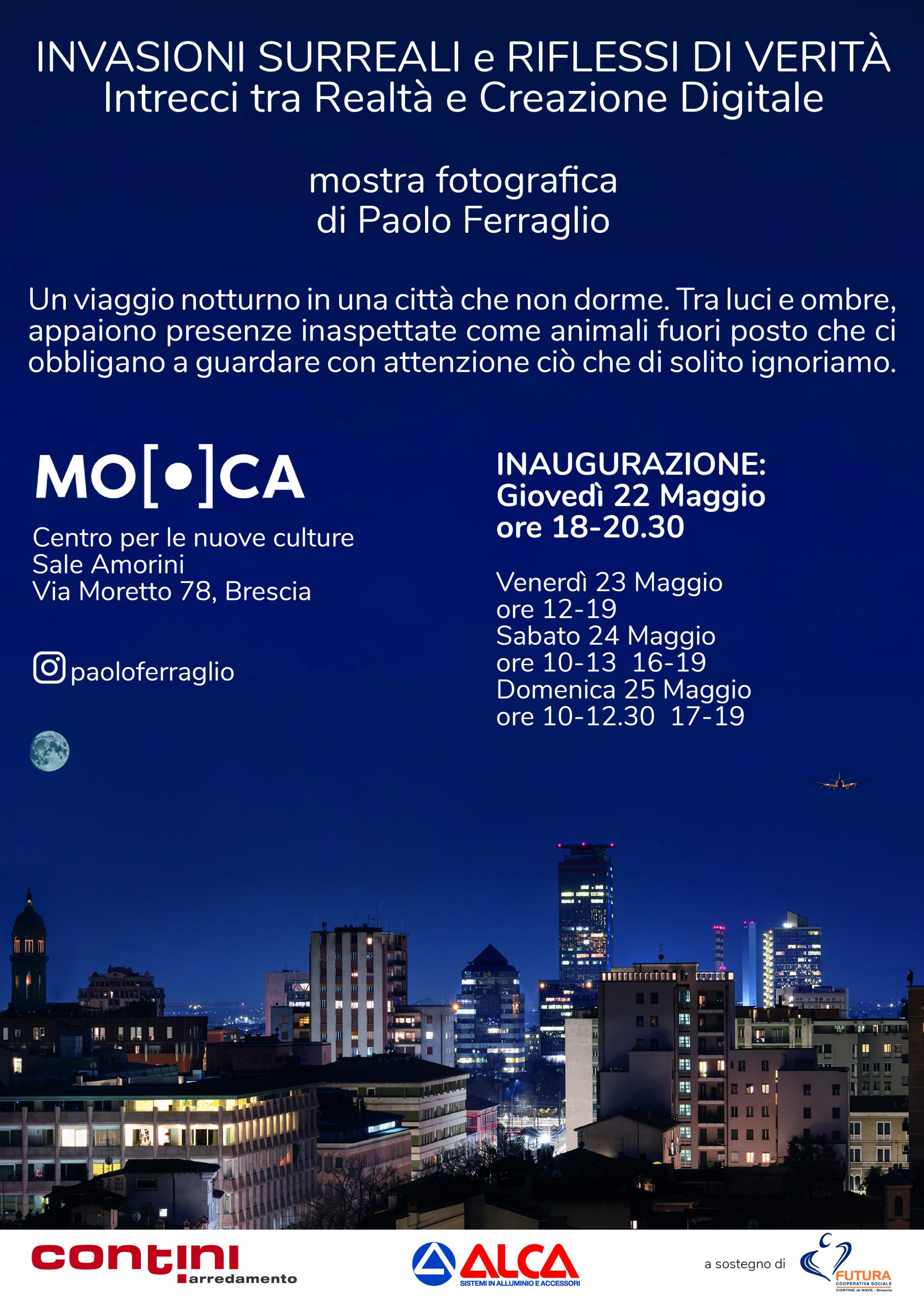 La mostra, intitolata “Invasioni Surreali e Riflessi di Verità”, nasce dal desiderio di stimolare una riflessione sulla nostra capacità di osservare. Ogni fotografia ritrae una scena urbana notturna apparentemente ordinaria, ma nasconde un elemento surreale, volutamente fuori posto: una giraffa che attraversa una strada, un gorilla seduto su una terrazza, una luna piena che non c’ è o delle stelle che avrebbero voluto esserci. Questi elementi non sono solo un invito a osservare con maggiore attenzione ciò che ci circonda, ma anche a riscoprire il valore dell’imperfezione e dell’imprevisto.
