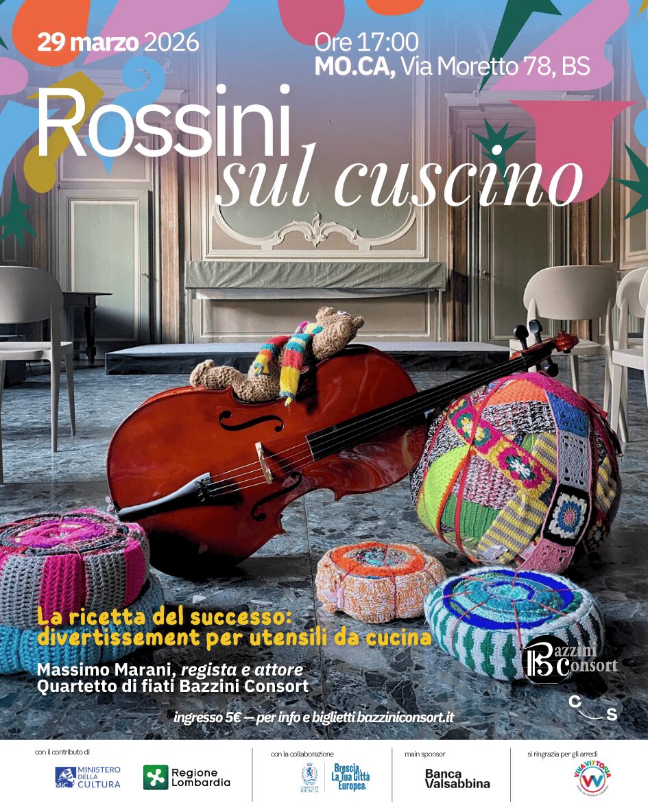 Concerto-spettacolo per famiglie che unisce musica e teatro in modo divertente e coinvolgente: il narratore Massimo Marani, insieme all’Ensemble Bazzini Consort, guida il pubblico alla scoperta di Rossini attraverso curiose metafore del mondo della cucina.
