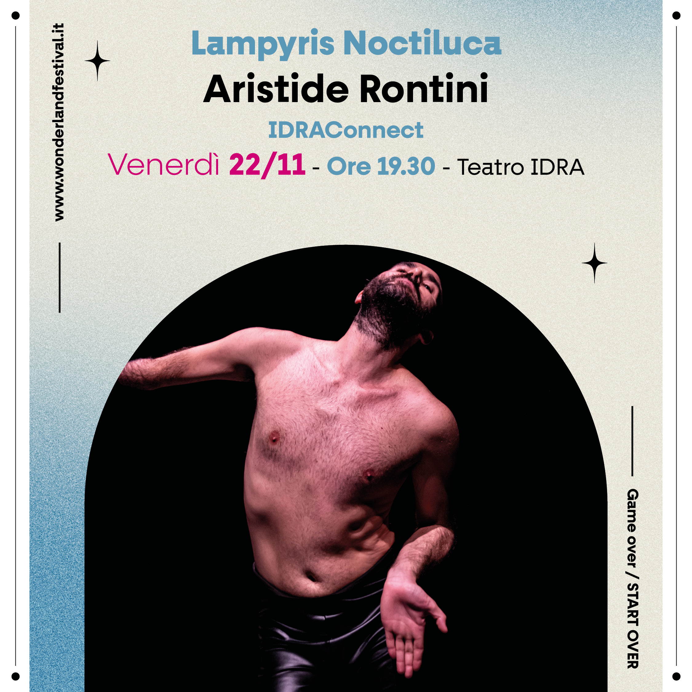Aprendo il campo all’ascolto di risonanze profonde tra la quotidianità e il passato, tra il mondo materiale e una dimensione puramente percettiva, Aristide Rontini dialoga con l’eredità di Pier Paolo Pasolini. La prospettiva di questo solo fa luce sul corpo come luogo di trasformazione e visioni immaginifiche. La sparizione delle lucciole, evocata da Pasolini nel suo articolo del 1975, è un’immagine che sostiene il processo creativo “da dentro”. Senza apparire metaforicamente nel corpo che si pone all’attenzione degli spettatori, la lucciola pasoliniana rappresenta innanzitutto una postura poetica. Illuminato da una luce che rinfrange tutte le forme di presenza che il corpo di Aristide Rontini è in grado di incarnare, non si pone limite allo sguardo di chi osserva. La danza è portatrice di una diversità che non è più solo auspicata, promossa, celebrata e descritta, ma pienamente vissuta. Tra vissuto interiore ed esteriore – tra vécu e ressenti – il corpo si espone e danza, ponendosi al di fuori di un’univoca lettura.