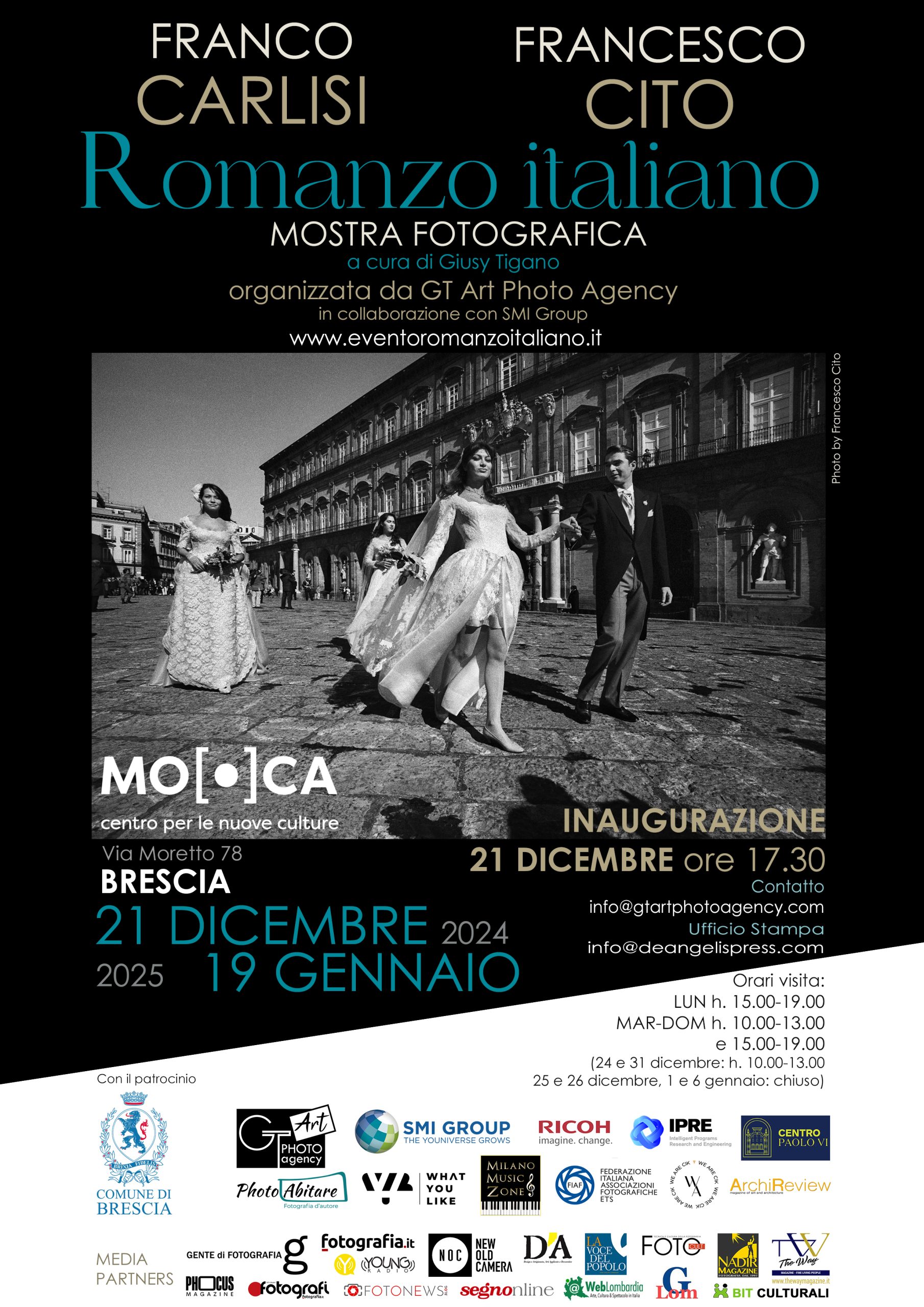 L’esposizione, curata da Giusy Tigano, presenta 120 fotografie in bianco e nero di due dei fotografi italiani di maggior rilievo a livello internazionale, Franco Carlisi e Francesco Cito, i quali si confrontano e lasciano che le loro opere dialoghino tra loro, creando una narrazione condivisa sul tema del matrimonio.