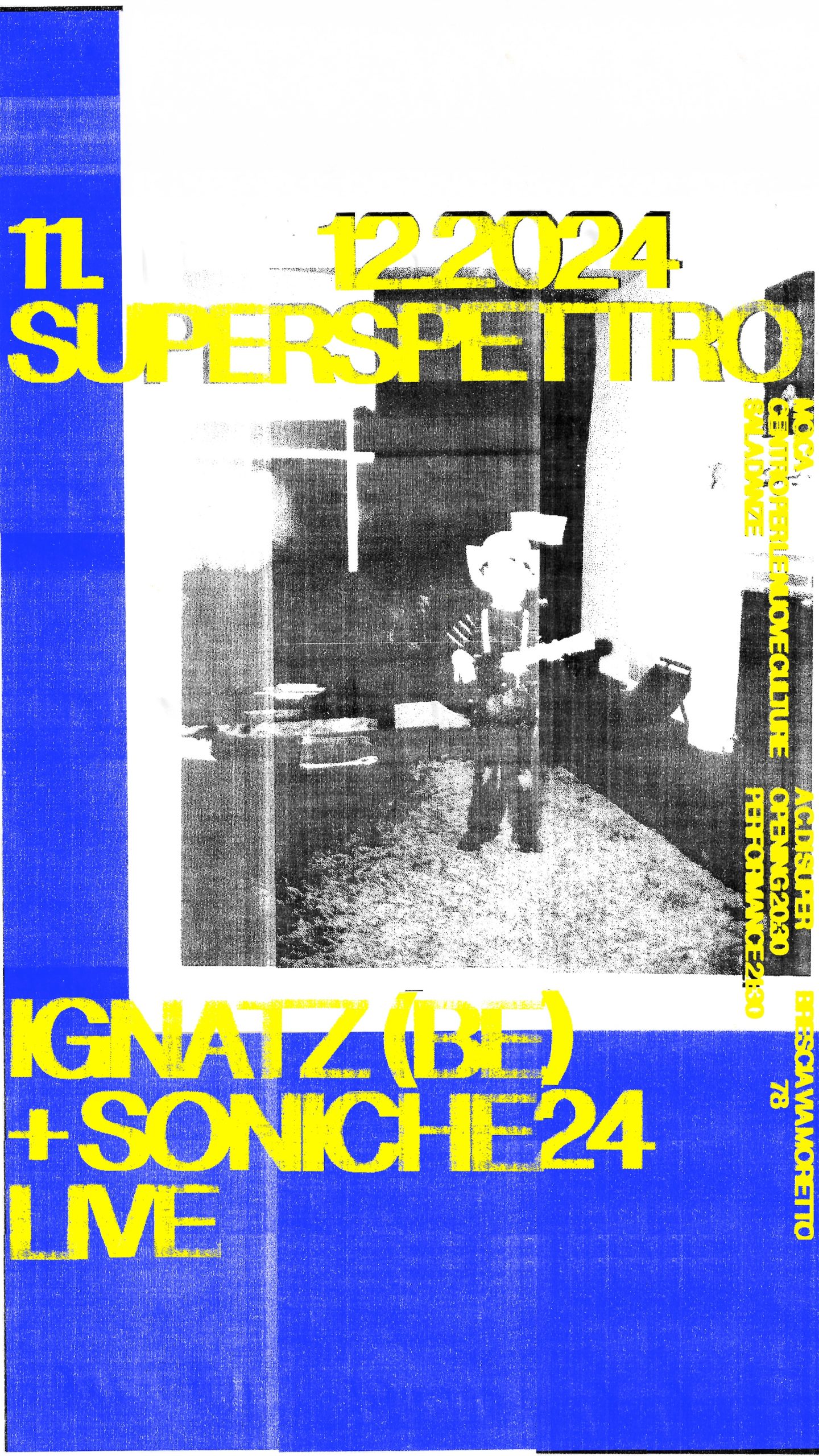 SuperSpettro apre le porte di Sala Danze a MO.CA – Centro per le Nuove Culture a Brescia presentando Ignatz, progetto solista per chitarra e loop del musicista belga Bram Devens. Per il quarto anno di collaborazione con il Centro Musica di Modena performerà dal vivo anche Soniche24, collettivo musicale composto da Simone Caparrucci, Roberto Di Blasio, Andrea Fabris, Andrea Geremia e Lorenzo Setti che porta in concerto la composizione nata all’interno della residenza artistica Sound as Time, coordinata dal compositore e percussionista norvegese Ingar Zach e curata da Riccardo La Foresta. In Sala Conversazioni un intervento a cura di Super.